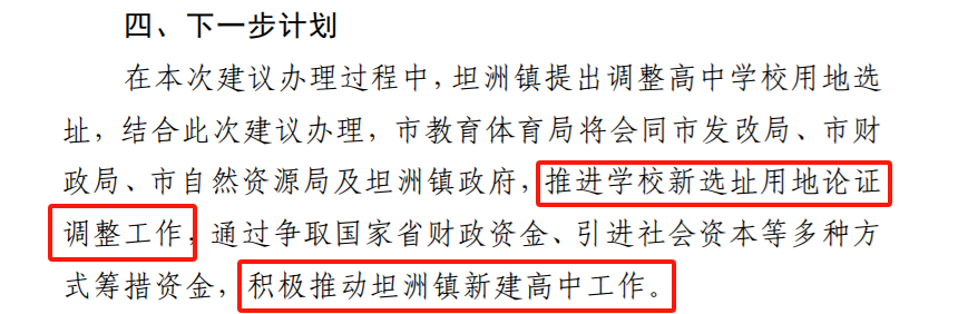 中山市坦洲镇人口众多,远离市区,没有高中,而且一直处于规划阶段,并无实际进展,是否是市级不够支持?何时才能落地?