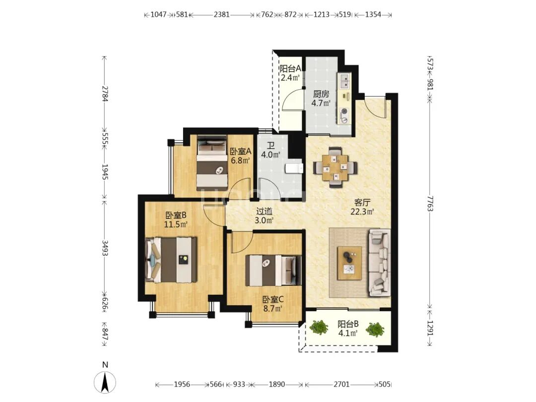 以往二手89平小户型,客厅开间仅有3.2米左右,新规后开间能去到3.4米。