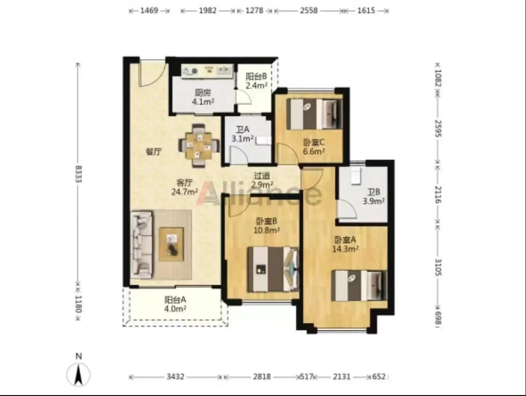 2、主卧和客厅尺寸要求严格,面积更宽敞。