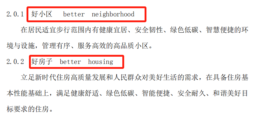 好房子:立足新时代住房高质量发展和人民群众对美好生活的需求,在具备住房基 本性能基础上,满足健康舒适、绿色低碳、智能便捷、安全耐久、和谐美好目 标要求的住房。