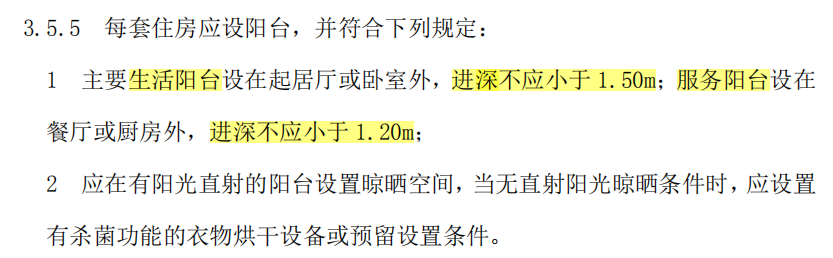 生活阳台进深不小于1.5米;服务阳台不小于1.2米,这条规定中,双阳台的意义比进深更大。