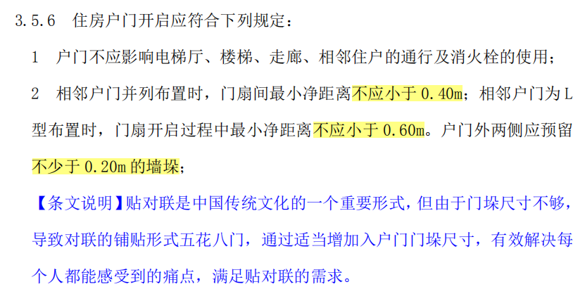 3、相邻户门不小于40厘米,户门两侧预留不少于20厘米的墙垛。