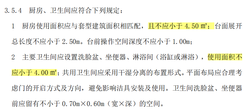6、厨房不小于4.5㎡,主卫不小于4㎡。