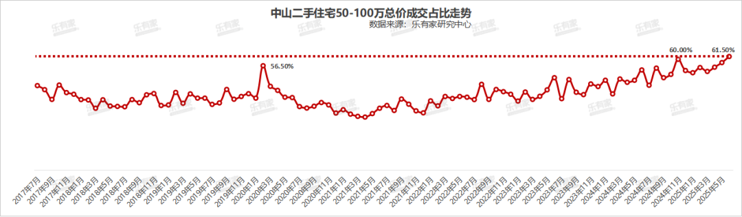 买家超6成!中山二手住宅50-100万总价成交占比已达历史高位