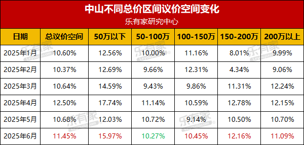 6月中山二手房议价空间上涨,总价50万以内议价空间最大