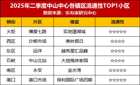 二季度中山中心各镇区流通性TOP1小区,这些小区上榜!