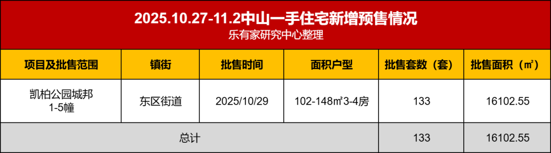 中山又一新大型商超,拟11月底开业 日前,位于沙溪大道6号、时代倾城旁的金丰广场内(原时代芳华里)的金丰超市,公布了预计在11月底开业的消息。值得一提的是,金丰超市所在的金丰广场,目前也在全面升级、招商中。该商场约5万平体量,覆盖B2至L5全楼层,配备1000个专属车位,户外广场承载各种文化艺术体活动,2000米风情步行街满足休闲生活。(中山房叔) 官宣:明年11月,在中国广东深圳举办APEC! 亚太经合组织东道主交接仪式在韩国庆州举行,中国将第三次担任亚太经合组织东道主。中国将在明年11月在中国广东省深圳市举办亚太经合组织第三十三次领导人非正式会议。深圳地处太平洋沿岸,几十年间从一个落后的小渔村发展成为现代化国际大都市,是中国人民创造的世界发展史上的一个奇迹,也是中国坚定不移奉行互利共赢开放战略的重要窗口。期待各方明年共赴深圳之约,共商亚太发展大计,共创亚太美好明天。(新华社) 珠海主城⇌横琴再添快速路,马上通车! 日前,珠海市属国企@红宝石集团官微发布推文称,横琴隧道至黑白*面将军山隧道新建工程,已于10月31日率先完成南段地面J、L匝道的通车任务。该段即将通车,同时也标志着横琴连接珠海城区的第三条主动脉正式打通。随着公路、铁路以及航空等不断的完善,珠海也将加速构建起“陆空联动、多式联运” 的交通格局,为城市产业升级和市民出行提供更强支撑。(珠海房姐) 总价19.1亿元!华润夺得东莞松山湖地块 备受瞩目的松山湖宅地土拍,落槌了!据东莞市公共资源交易中心信息,10月30日,松山湖康庄路东侧编号2025WR005地块正式网拍,2家房企经历71轮鏖战,最终被华润置地(深圳市润投咨询有限公司)以总价19.1亿元竞得,溢价12%。据了解,编号2025WR005地块占地73667.67平方米,容积率1.2,计容总建筑面积约8.8万平方米,折合楼面价约21606元/平方米。该地块素质较优,直线距离东莞八景之首松湖烟雨仅约300米,可享一线湖景资源。东侧的松山湖生物医药基地,属于东莞七大战略性新兴产业基地之一;南侧分布有中海松湖林语、深业松湖云城,北侧紧邻万科虹溪诺雅、翔龙御湖居,居住氛围浓厚。周边还分布有松山湖中心小学、东莞中学松山湖学校、松山湖未来学校等优质教育资源。(东莞阳光网)