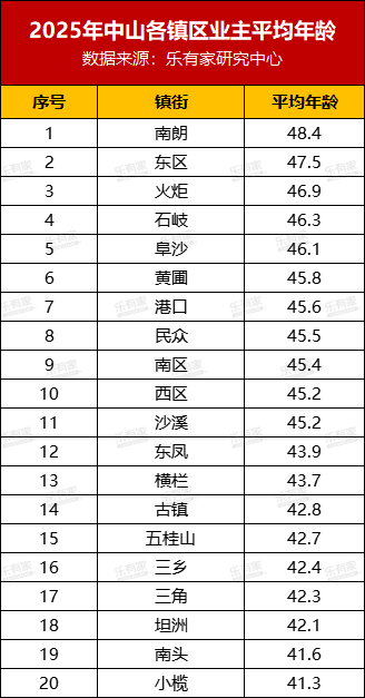 中山各镇区业主平均年龄首次曝光:这一镇区最年轻!