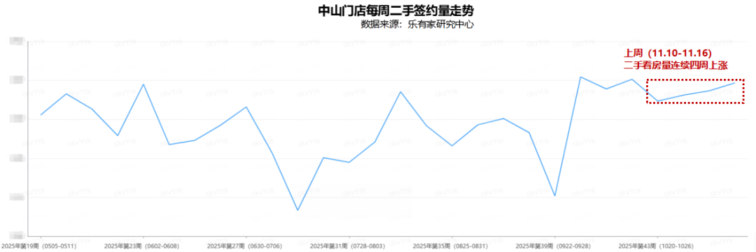 中山二手看房量连涨4周,二手签约量环比上涨28.6%,达近8个月最高位