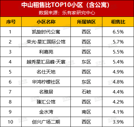 中山租售比TOP10小区出炉,最高可达6.5%