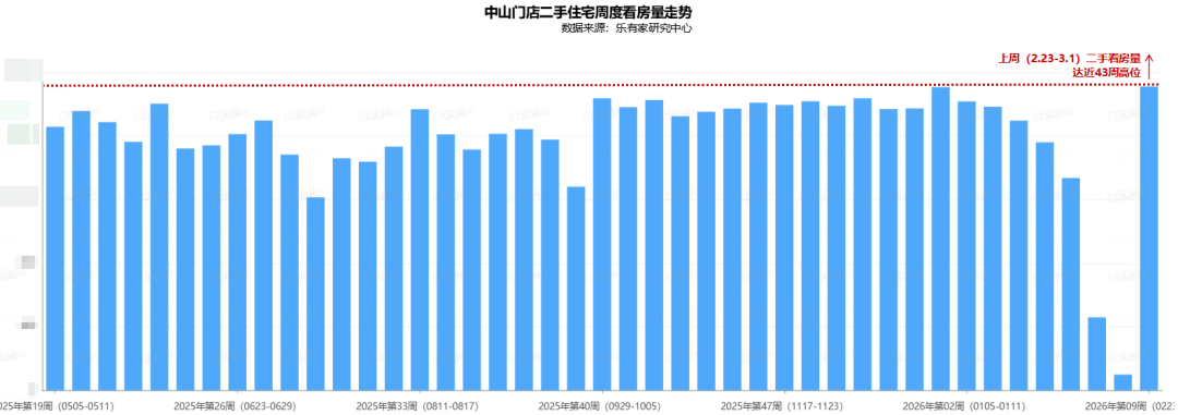 中山门店周二手看房量环比涨183%,达近43周高位