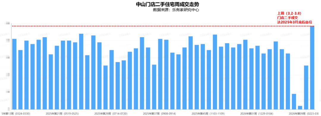如此庞大客户量带动下,上周(3.2-3.8)门店二手成交量,达2025年3月底后高位,根据乐有家成交量预估,中山全市单周二手成交或破1000+套!从宏观格局看,全国多个重点城市(如北上广深)上周(3.2-3.8)二手成交量均破近年历史纪录,市场全面向好回暖趋势明显,2026年楼市拐点信号强烈,后市可期。(乐有家研究中心)