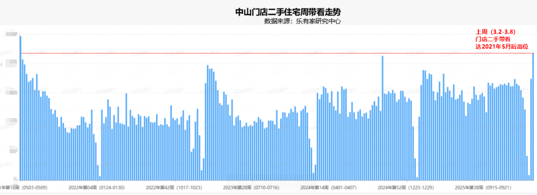 中山全市单周二手成交或破千套!乐有家门店带看量达2021年5月后高位!